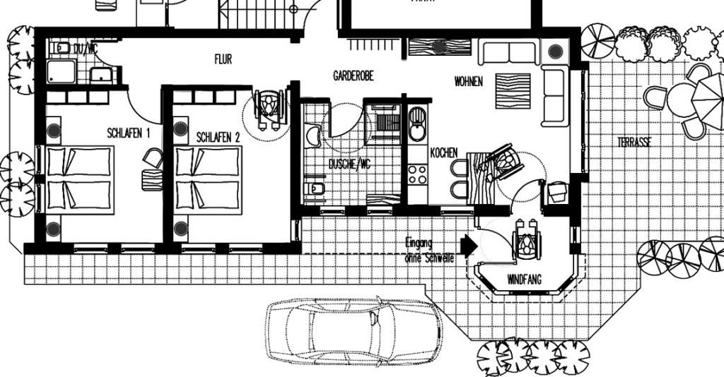 Behindertengerecht, Erdgeschoß, 85qm, für 2 – 5 Personen
