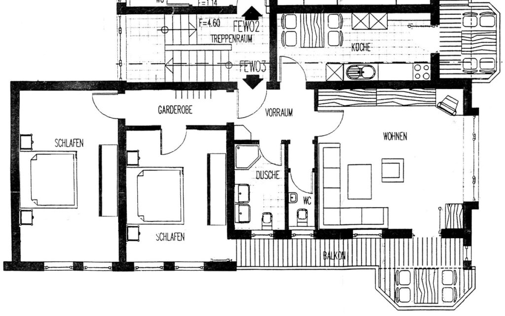 Die Wohnung Nr. 3 befindet sich im Obergeschoß mit einem Süd- und Westbalkon (freier Sicht auf die Berge) und verfügt über ein sehr großes Wohnzimmer, Küche (Backofen und Spülmaschine) und Essplatz, zwei sehr großen Schlafzimmern, Badezimmer (Doppelwaschbecken) mit Dusche/WC und zusätzlich seperatem WC.